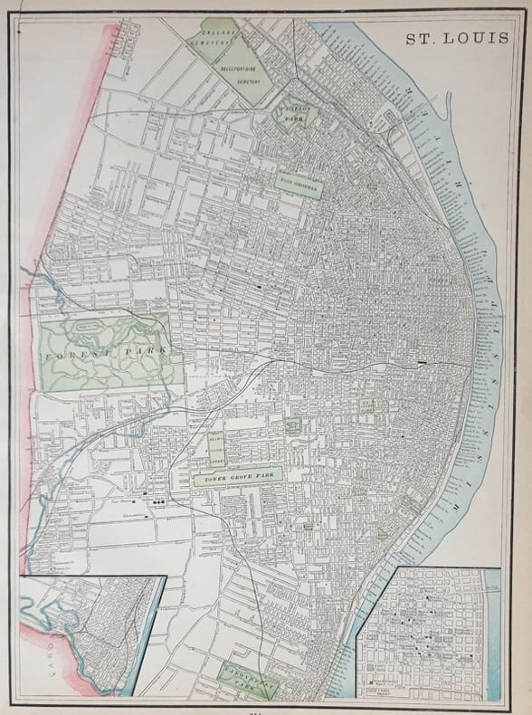 Bellissima mappa colorata di Saint Louis and di Kansas City in Missouri. Al verso mappa colorata di Omaha. Autore: George F. Cram Atlante: Standard American atlas of the world Data: 1890 circa Tecnica: litografia Dimensione del foglio: 36,5x29 cm Dimensione dell'incisione: 34,5x24,5 cm Condizioni:Buone. Very beautiful page coloured map of Kansas In the verso coloured map of Omaha. Author: George F. Cram Atlas: Standard American atlas of the world Date: 1890 circa Technique: lythography Leaf Dimension: 36,5x29 cm Engraving Dimension: 34,5x24,5 cm Conditions: Good conditions.