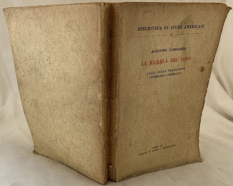 Prima edizione del 1961 di questa raccolta di saggi sulla tradizione letteraria americana scritta dall'anglista, critico letterario e traduttore Agostino Lombardo (1927-2005). Allievo di Mario Praz è uno dei padri dell'anglistica e dell'americanistica in Italia e uno dei massimi critici dell'opera shakesperiana per la quale effettuò numerose traduzioni. Numerose note manoscritte e sottolineature all'interno. All'interno: La letteratura americana in Italia, La ricerca dei classici, Il passato e il presente. In buone condizioni. Copertina editoriale in discrete condizioni generali con lievi usure ai margini e dorso. Legatura in discrete condizioni con lievi rotture. Pagine in buone condizioni con fioriture. In 8. Dim. 22x14,5 cm. Pp. 422+(1).First edition of 1961 of this colection about american literary tradition written byt he anglist, literary critic and translator Agostino Lombardo (1927-2005). Student of Mario Praz he is one of the father of anglistic and americanistic and one of the most important criticians of Shakespeare worksfor which he made different translations. Different handwritten notes and underlinings inside. Inside: La letteratura americana in Italia, La ricerca dei classici, Il passato e il presente. In good conditions. Editorial cover in fair general conditions lightly worn in the edges and spine. Binding in fair conditions. Inside pages are in good conditions with foxing. In 8. Dim. 22x14,5 cm. Pp. 422+(1).
