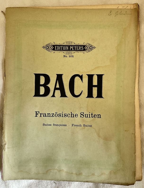 Edizione Peters di inizio novecento di alcune melodie: "Six petites suites" di Johann Sebastian Bach. In discrete condizioni. Copertina editoriale in discrete condizioni con lievi usure marginali. Piatti staccati. Legatura in mediocri condizioni con rotture. Pagine in discrete condizioni con rare fioriture. Lievi gore d'umidità. In 4. cm.31,5x24. Pp. 55.Peters edition of early 20th century of some melodies "1Six petites suites" by Johann Sebastian Bach. In fair conditions. Editorial cover in fair conditions lightly worn in the extremities. Front plate is detached. Binding in poor conditions with cracks. Pages in fair conditions with occasional foxing. Light dump stains in the edges. In 4. cm.31,5x24. Pp. 55.<BR><BR>