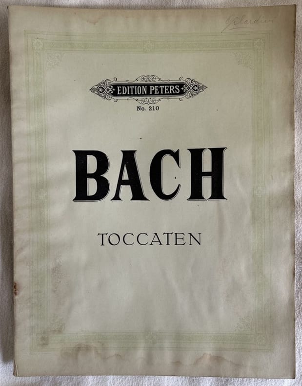 Edizione Peters di inizio novecento di quattro "Toccata con fuga" di Johann Sebastian Bach. In discrete condizioni. Copertina editoriale in discrete condizioni con lievi usure marginali. Legatura in buone condizioni. Pagine in discrete condizioni con rare fioriture. Lievi gore d'umidità. In 4. cm.30,5x23,5. Pp. 45.Peters edition of early 20th century of four "Toccata con fuga" by Johann Sebastian Bach. In fair conditions. Editorial cover in fair conditions lightly worn in the extremities. Binding in good conditions. Pages in fair conditions with occasional foxing. Light dump stains in the edges. In 4. cm.30,5x23,5. Pp. 45.