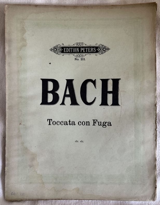 Edizione Peters di inizio novecento della melodia "Toccata con fuga" di Johann Sebastian Bach. In discrete condizioni. Copertina editoriale in discrete condizioni con lievi usure marginali. Piatto anteriore staccati e posteriore quasi staccatoLegatura in buone condizioni. Pagine in discrete condizioni con rare fioriture. Lievi gore d'umidità. In 4. cm.31x24. Pp. 39.Peters edition of early 20th century of the melody "Toccata con fuga" by Johann Sebastian Bach. In fair conditions. Editorial cover in fair conditions lightly worn in the extremities. Front plate is detached and back plate almost detached. Binding in good conditions. Pages in fair conditions with occasional foxing. Light dump stains in the edges. In 4. cm.31x24. Pp. 39.
