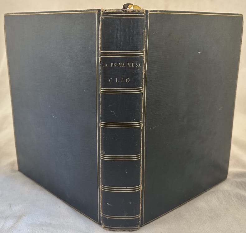 Rarissima opera dello scrittore mistico George Baldwin (1744-1818), diplomatico inglese che gestiva i rapporti tra la "East India Company" e l'Egitto per poi ricoprire il ruolo di Console in Egitto. Per un certo periodo visse in Italia. Opera pubblicata senza frontespizio a cura dell'autore per una serie di amici selezionati. Senza data ma del 1802 circa (come si evince dalla prefazione). Nella parte introduttiva l'autore dichiara che è stata scritta durante un sonno magnetico. Baldwin nel 1789 iniziò alcuni esperimenti su se stesso e si rese conto di possedere "un influenza magnetica" durante quello che nella prefazione chiama "magnetic sleep" e i cui messaggi venivano trascritti da Cesare Avena di Valdieri raccolti nello scritto "Magnetic productions" per un totale di 51 sessioni. Lo scritto termina con: "Cosi l'anno primo fini del Viaggiatore Divino" Seguono "Il viaggiator divino anno secondo" e "Viaggiatore divino anno terzo". Presente anche "On the soul" sull'immortalità dell'anima. Testo inglese. Dedica manoscritta dell'editore/autore George Baldwin a Ernest Augustus Duca di Chamberland (1771-1851) che in seguitò diventerà Re di Hanover dal 1837 al 1851. Ex libris nobiliare al contropiatto anteriore probabilmente dello stesso Duca l quale il volume è dedicato.<BR> Tagli dorati. In ottime condizioni. Copertina in piena pelle con titolo e decorazioni in oro al dorso e piatti in buone condizioni con lievi usure marginali. Legatura in ottime condizioni. Pagine in buone condizioni con rare fioriture. In 4. Dim. 29x23,5 mm. Pp. (1)+IX+625. Peso Kg. 0,830Very scarce work by the mystic writer George Baldwin (1744-1818), english diplomat who managed the relationship between "East India Company" and Egypt and then became General Consolin Egypt. For a period he lived in Italy. Work published without title page for the author to be distributed to a series of friends. Not dated but of 1802 circa (as indicated in the prefation). In the introductive part the author declares that it has been written during a "magnetic sleep". Baldwin in 1789 began some experiments on itselfe and discovered he had a "magnetic influence" during what in the prefation calls "magnetic sleep" These messages were transcribed by Cesare Avena di Valdieri andd collected in the writing "Magnetic productions" for a total of 51 sessions. The writings ends with: "Cosi l'anno primo fini del Viaggiatore Divino" Then "Il viaggiator divino anno secondo" and "Viaggiatore divino anno terzo". Then "On the soul" about the immortality of the soul. English text. Handwritten dedication of the editor/author George Baldwin to Ernest Augustus Duke of Chamberland (1771-1851) who will become King of Hanover from 1837 to 1851. Ex libris in the front counterplate probably of the same Duke to whom the volume is dedicated. In good conditions. Full leather coeval cover with gilted title and decorations in the spine in good conditions lightly worn in the extremities. Binding in very good conditions. Pages in good conditions with occasional foxing. In 4. Dim. 29x23,5 mm. Pp. (1)+IX+625. Weight Kg. 0,830