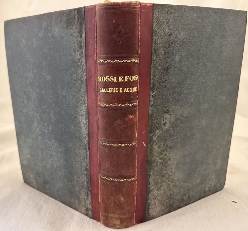 Interessante raccolta di due opere legate insieme in un unico volume. La prima del 1889 è un manuale sulla realizzazione di gallerie pozzi e cunicoli a cura di Terenzio Rossi. L'autore descrive accuratamente la realizzazione delle gallerie con le varie tecniche e strumenti. Segue approfondimento sulla realizzazione della Ferrovia Metropolitana di Londra e Stazione di Kensington. Alcune illustrazioni e quattro tabelle ripiegate. La seconda opera è un manuale di diritto sulla proprietà delle acque (fiumi e torrenti, acque) a cura dell'Avvocato Gaetano Foschini. All'interno legislazione italiana, francese, prussiana, belga e inglese. In ottime condizioni. Copertina in mezza pelle con titolo e decorazioni in oro al dorso in buone condizioni con lievi usure marginali. Legatura in buone condizioni. Pagine in buone condizioni con rare fioriture. In 8. cm. 24x17. Pp. XV+189+IV+360+1. Interesting collection of two works bound together in a unique volume. The first one of 1889 is a manual about the realization of galleries by Terenzio Rossi. The author accurately describes the realization of galleries with its techniques and instruments. Then an appendix dedicated to the realization of London railwaty and Kensington station. Some illustrations and four folded charts. The second work is a manual of right about the property of waters (rivers and waters) by the Lawyer Gaetano Foschini. Inside italian, french, prussian, nelgian and english law. In very good conditions. Half leather coeval cover with gilted title and decorations in the spine in good conditions lightly worn in the extremities. Binding in good conditions. Pages in good conditions with occasional foxing. In 8. cm. 24x17. Pp. XV+189+IV+360+1.