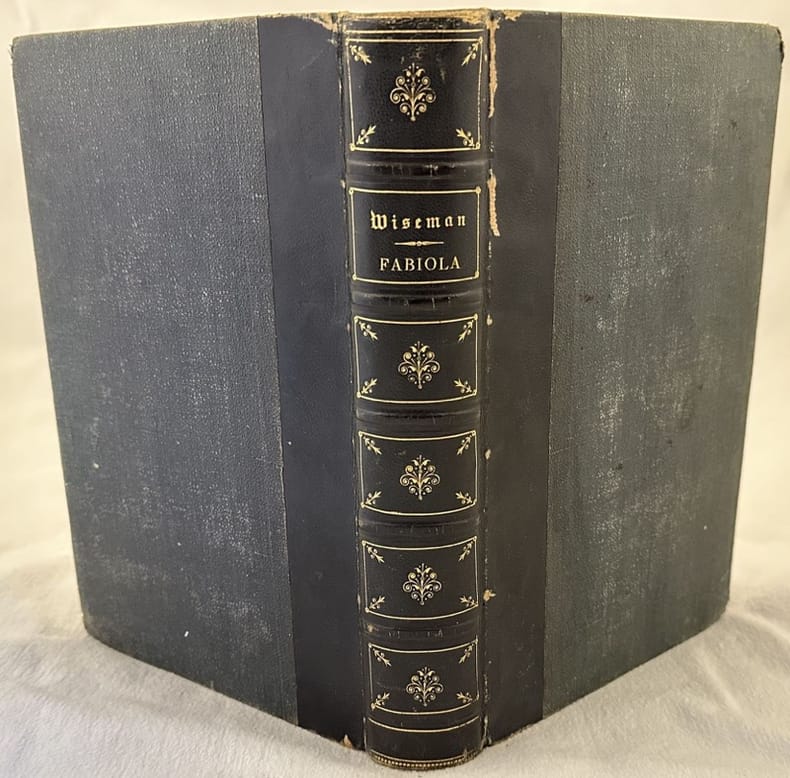 Edizione del 1870 circa di questo romanzo storico scritto da Nicholas Wiseman (1802-1865) della collana "Biblioteca Universale". L'opera fu composta con l'intento di sensibilizzare alla fede cattolica i lettori, in particolar modo quelli di cultura inglese. Numerose illustrazioni nel testo e otto tavole fuori testo da disegni di Yan Dargent. Introduzione di Alfred Nettement. In buone condizioni. Copertina in mezza pelle con titolo e decorazioni in oro al dorso in buone condizioni con lievi usure ai margini e dorso. Legatura in buone condizioni. Pagine in buone condizioni con fioriture. In 8. cm. 24,5x16,5. Pp. XIX+(3)+486+(1)+(8) pl..Edition of 1870 circa of this historical novel written by Nicholas Wiseman (1802-1865) of the series "Biblioteca Universale". The work was made up with the aim to sensibilize to the catholic faith the readers, particularly that of english culture. Different illustrations in the text and eight out of text plates from drawings by Yan Dargent. Introduction by Alfred Nettement. In good conditions. Half leather coeval cover with gilted title and decorations in the spine in good conditions lightly worn in the extremities. Binding in good conditions. Pages in good conditions with foxing. In 8. cm. 24,5x16,5. Pp. XIX+(3)+486+(1)+(8) pl..<BR><BR>