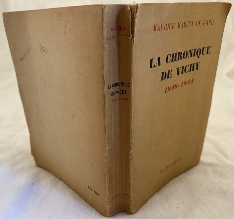 Edizione del 1948 di questo studio sulla "Cronaca di Vichy 1940-1944" a cura di Maurice Martin du Gard. Esemplare numerato 58 su 100 esemplari (da 21 a 120) stampati su bella Velina. In buone condizioni. Copertina editoriale in buone condizioni generali con lievi usure ai margini e dorso. Legatura in buone condizioni. Pagine in buone condizioni con rare fioriture. In 8. Cm 21,5x15. Pp. 529+(1). Edition of 1948 d of this study about "Cronaca di Vichy 1940-1944" by Maurice Martin du Gard. Copy numbered 58 on 100 copies (from 21 to 120) published on beautiful tissue paper. In good conditions. Editorial cover in good general conditions lightly worn in the extremities. Binding in good conditions. Pages in good conditions with occasional foxing. In 8. Cm 21,5x15. Pp. 529+(1).