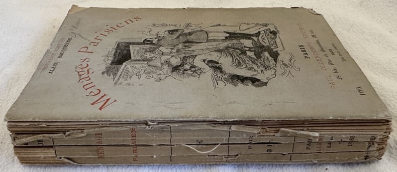 Seconda edizione del 1883 di questo romanzo di Alain Bauquenne pseudonimo di Octave Mirbeau (1848-1917). In discrete condizioni. Copertina editoriale in discrete condizioni generali con usure ai margini e dorso. Legatura in mediocri condizioni con rotture. Pagine in buone condizioni con fioriture. In 16. Dim. 18,5x12 cm. Pp. 370+(1). Second edition of 1883 of this novel by Alain Bauquenne pseudonimous of Octave Mirbeau (1848-1917). In fair conditions. Editorial cover in fair general conditions lightly worn in the extremities. Binding in poor conditions with cracks. Inside pages are in good conditions with foxing. In 16. Dim. 18,5x12 cm. Pp. 370+(1).