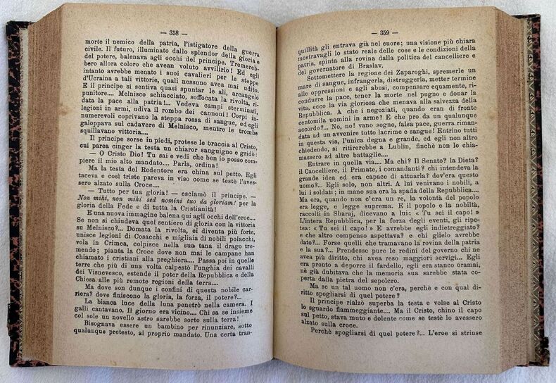 Prima edizione del 1900 di questo romanzo dello scrittore polacco Henryk Sienkiewicz (1846-1916).<BR>L'opera è in un volume ed è completo. Traduzione italiana di Federigo Verdinois. Alla fine mappa del Regno di Polonia. Ritratto in antiporta. In buone condizioni. Copertina in mezza pelle coeva con titolo e decorazioni in oro al dorso in ottime condizioni generali con lievi usure ai margini e dorso. Legatura in buone condizioni. All'interno le pagine si presentano in ottime condizioni con rare fioriture. In 8. Dim. 19x13 cm. Pp. 692.First edition of 1900 of this novel by the poland writer Henryk Sienkiewicz (1846-1916). The work is in one volume and it is complete. Italian translation by Federigo Verdinois. At the end map of Reign of Poland. Portrait in the frontspice. In good conditions. Half leather coeavl cover with gilted title and decorations in the spine in very good general conditions lightly worn in the extremities. Binding in good conditions. Pages are in very good conditions with occasional foxings. In 8. Dim. 19x13 cm. Pp. 692.
