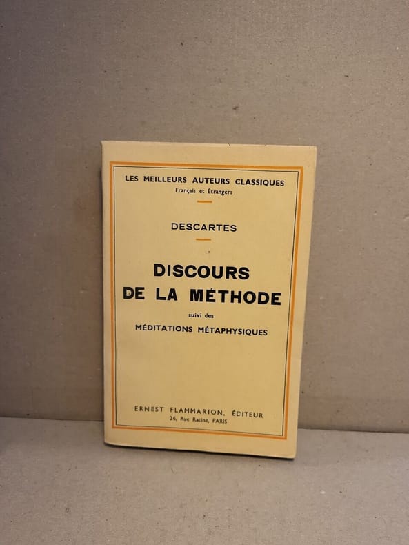 Frontispices des Essais et des Specimina Philosophiae et reproduction des très nombreuses figures du Discours nouvelle édition de 1982 Contents, Chapitres : Avertissement, xii, Texte, 739 pages avec la table - Discours de la méthode - La Dioptrique - Les Météores - La Géométrie - Tables - Avec les textes en latin : Indices - Dissertatio de Methodo - Dioptrice - Meteora - Note sur le problème de Pappus - Appendice - René Descartes est un mathématicien, physicien et philosophe français, né le 31 mars 1596 à La Haye-en-Touraine, aujourd'hui Descartes, baptisé le 3 avril 1596 dans l'église Saint-Georges de Descartes, et mort le 11 février 1650 à Stockholm. - Le Discours de la méthode (sous-titré Pour bien conduire sa raison, et chercher la vérité dans les sciences) est un texte philosophique publié anonymement par René Descartes à Leyde le 8 juin 1637. Dans les premières éditions, ce discours servait d'introduction à trois traités scientifiques mettant en application cette méthode : La Dioptrique, Les Météores et La Géométrie. Pour Descartes, il sagit « den dire assez pour faire juger que les nouvelles opinions, qui se verraient dans la Dioptrique et dans les Météores, nétaient point conçues à la légère. » Toutefois, sa célébrité est devenue telle, quil est désormais souvent publié seul, comme un essai indépendant. Ce discours marque une rupture avec la tradition scolastique, jugée trop « spéculative » par Descartes (sixième partie), et se présente plutôt comme un plaidoyer en faveur du progrès des techniques et pour une nouvelle fondation des sciences sur des bases plus solides. Il fut rédigé directement en français, langue vulgaire, Descartes voulant par là sopposer à la tradition scolastique (qui avait pour habitude décrire en latin) et sadresser à un public plus large que les savants et les théologiens. Il souhaitait « être compris des femmes et des enfants ». Dans ce discours, Descartes expose son parcours intellectuel de façon rétrospective, depuis son regard critique porté sur les enseignements qu'il avait reçus à l'école, jusqu'à sa fondation d'une philosophie nouvelle quelques années plus tard. Il y propose aussi une méthode (composée de quatre règles) pour éviter l'erreur, et y développe une philosophie du doute, visant à reconstruire le savoir sur des fondements certains, en s'inspirant de la certitude exemplaire des mathématiques la célèbre phrase « je pense donc je suis » (cogito, ergo sum), qui permet à Descartes de sortir du doute, lui servira à ce titre de premier principe. Par ailleurs, il y résume ses méditations sur l'âme et sur Dieu, dont il donne une version beaucoup plus étendue dans les Méditations métaphysiques, quatre ans plus tard. Le Discours de la méthode est aussi loccasion pour Descartes de présenter une morale provisoire, tenant en quelques maximes de conduite rendues nécessaires par la méthode elle-même3, et de développer des considérations sur les animaux (théorie des « animaux-machines ») et sur le rôle du cur dans la circulation du sang. Enfin, le traité présente des déclarations sur le rapport de lhomme à la nature, représentatives de la modernité, puisque Descartes y dit que les hommes doivent se « rendre comme maîtres et possesseurs de la nature » par le progrès des techniques, au premier plan desquelles il recommande daméliorer la médecine. (source : Wikipedia) "Bel exemplaire, couverture propre avec d'infimes traces de pliures aux coins des plats, quelques rousseurs discrètes, intérieur frais et propre, exemplaire en grande partie non coupé, de cette édition de référence du ""Discours"", d'après l'édition origjnale parue à Leyde en 1637, et la version latine d'Etienne de Courcelles parue à Amsterdam en 1644. Il ne s'agit pas d'un fac-similé sauf les frontispices, mais le vieux français a été gardé, ainsi que les gravures originales. (Tome 6 des Oeuvres complètes de Descartes seul) - Near fine copy of Descartes ""Discours de la Méthode"" in the complete works published by C. Adam and P. Tannery, with the Dioptrics, Meteores and Geometry, Minor fo;dings tracks on the corners of the wrappers, very light foxings, inside is fine, no markings, and unopened on a large part, with the Latin translation from Courcelles (Text in French and Latin, except for the commentaries), the most important scientific work from René Descartes"