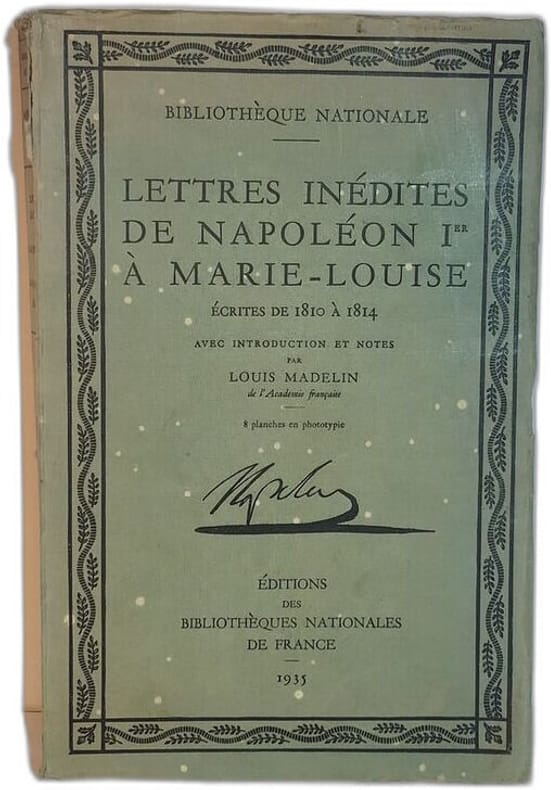 Paris, Editions des Bibliothèques Nationales de France 1935, 215x140mm, frontispice, XXXIX - 270pages, reliure demi-basane verte à coins avec auteur, titre, filets, ornementations et fleurons dorés au dos. Trois filets dorés sur les deux plats. Plat et garde papier marbré. Tranche supérieure dorée. Couvertures et dos conservés. Belle reliure avec le monograme de Napoléon Ier. Très bel exemplaire sur papier pur fil Lafuma, numéroté n.° 421 / 800.