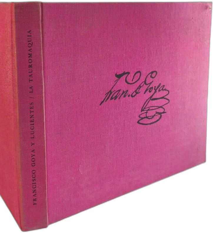 Colección de cuarenta y cuatro estampas que representan los principios y suertes del arte de lidiar toros. Estudio preliminar. Madrid, (R. Diaz-Casariego, Editor), 1963. Petit in-folio oblong (21,6 x 27,9 cm) 62 pages + 44 feuillets de planches, (1) feuillet. Reliure pleine toile brune, plat supérieur illustré et titré or. Plat inférieur sali. Intérieur en très bel état. Édition originale tirée à 1 000 exemplaires numérotés (no 505). Planches imprimées en héliogravure à Paris chez Aulard.