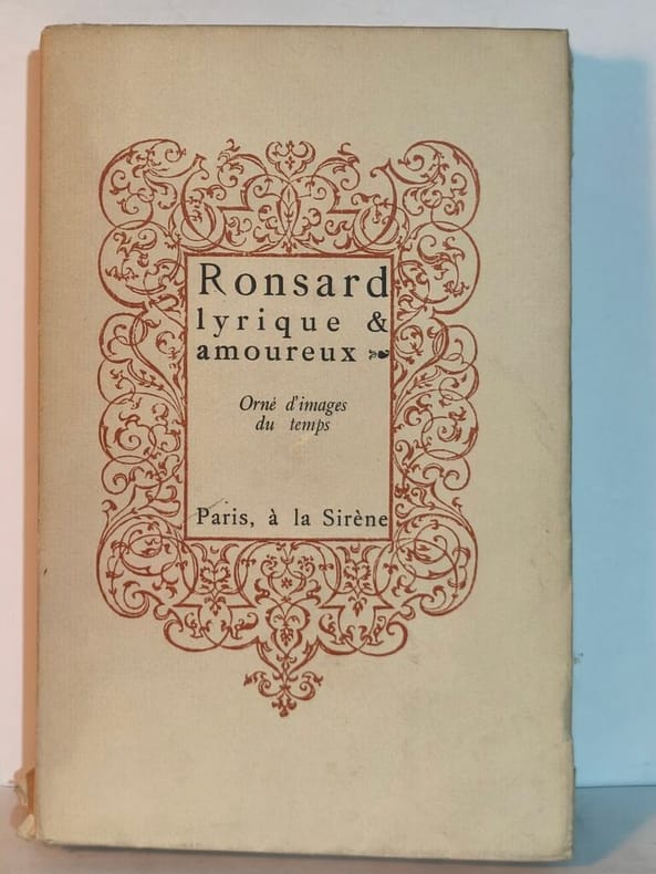 Exemplaire du tirage courant. Orné de 55 "images du temps", bandeaux et culs-de-lampe. Impression en 2 couleurs. Choix de poèmes amoureux de Ronsard. [Fouché No. 142].