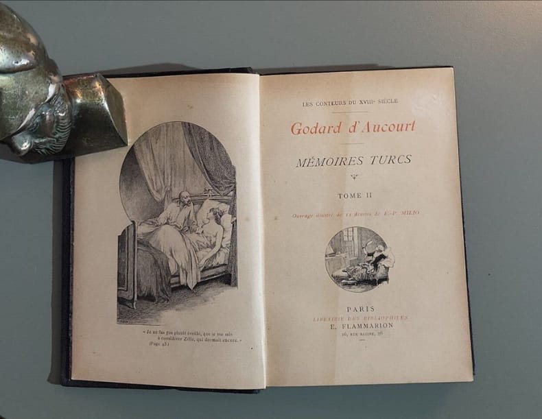 1900 Paris, Librairie des Bibliophiles E. Flammarion, collection "les conteurs du XVIIIe siècle", sans date (vers 1900), 2 tomes en 1 volume relié demi veau brun, VIII-179 et 179 pages, dos à nerfs orné d'un large fer doré, titre et auteur doré, tranche supérieure dorée, très bon état