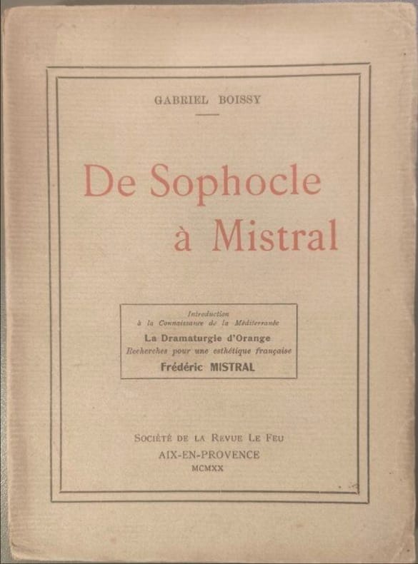 Introduction à la connaissance de la Méditerranée, la dramaturgie d'Orange, recherches pour une esthétique française, Frédéric Mistral.