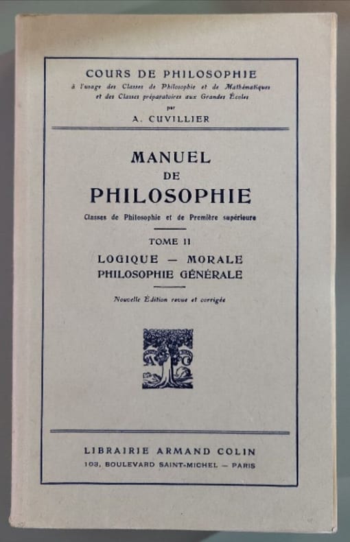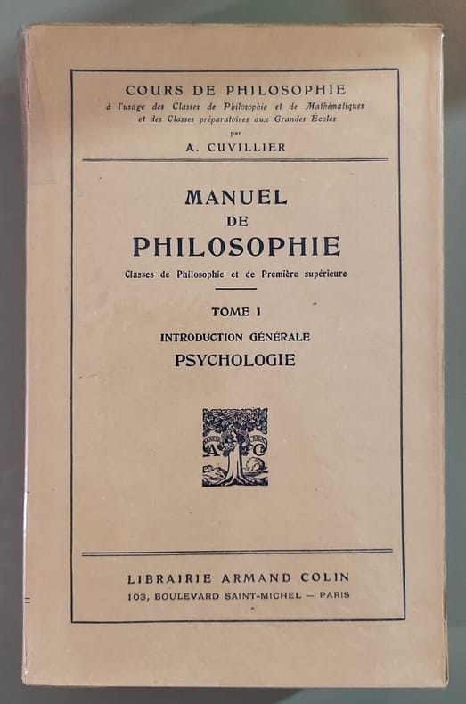 Cours de philosophie à l'usage des classes de Philosophie et de mathématiques et des classes préparatoires au grands ecoles par A. CUVILLIER. Classification Dewey : 370-Education