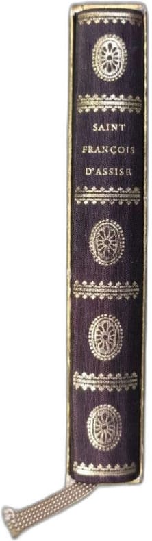 Les Fioretti de saint François d'Assise - Illustré par Dussarthou Traduits en français et annotés par R. Jacquin d’après l’édition Cesari publiée à Vérone en 1822, précédés d’une étude. Illustrés d’enluminures par A. Dussarthou et suivis d’études originales de P. Willibroad van Dijk, de A. Dussarthou et de P. Bouchet. Le tirage de cette édition est le 6e ouvrage de la collection « Héritage du Temps ». Exemplaire n°1243, l’un des 1900 exemplaires sur vélin de Lana. Ensemble en très bon état. L’ensemble est dans un coffret dont la façade est en forme de deux livres aux dos basane clair. L’intérieur du coffret est couvert de suédine rouge. L’intérieur contient l’ouvrage et un deuxième emboîtage. L’ouvrage est un plein cuir aux plats estampés, deux fermoirs en métal, tête dorée et à toutes marges, le sous-emboitage contient une chemise rigide au titre doré au dos « Les dossiers de l’édition », il contient Les commentaires, un ouvrage broché de 62 pages, et un étui avec les états successifs du tirage d’une gravure pour lequel l’éditeur indique « destinées au professionnel, ces feuilles n’accompagnent pas d’habitude l’exemplaire du bibliophile. Nous avons voulu qu’elles figurent ici pour que l’amateur soit à l’occasion de ce long travail en possession d’un document aussi rare que fidèle, apport précieux à sa collection ».