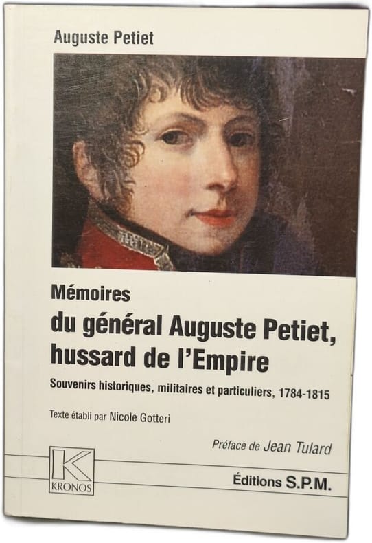 Editions S.P.M. 15 x 22 Paris 1996 Broché, couverture illustrée, 522 p. Sources, bibliographie, index. Illustrations, cartes. Souvenirs historiques, militaires et particuliers, 1784-1815, du général d'Empire Auguste Petiet, aide camp du maréchal Soult. Texte établi par Nicole Gotteri. Préface de Jean Tulard. Dos sans pliure, très bon exemplaire.(BeauC9)