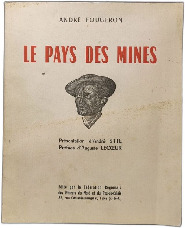 Couverture usagée avec manques de papier . Peintures commandées par la Fédération régionale des Mineurs du Nord et du Pas -de -Calais . " Pour travailler à son PAYS DES MINES, André Fougeron a eu l'appui sans réserve de la corporation minière, parce que la classe ouvrière ne ménage pas son appui à ceux des artistes ou intellectuels qui la comprennent et se battent sur ses positions idéologiques et politiques" A. Lecoeur.
