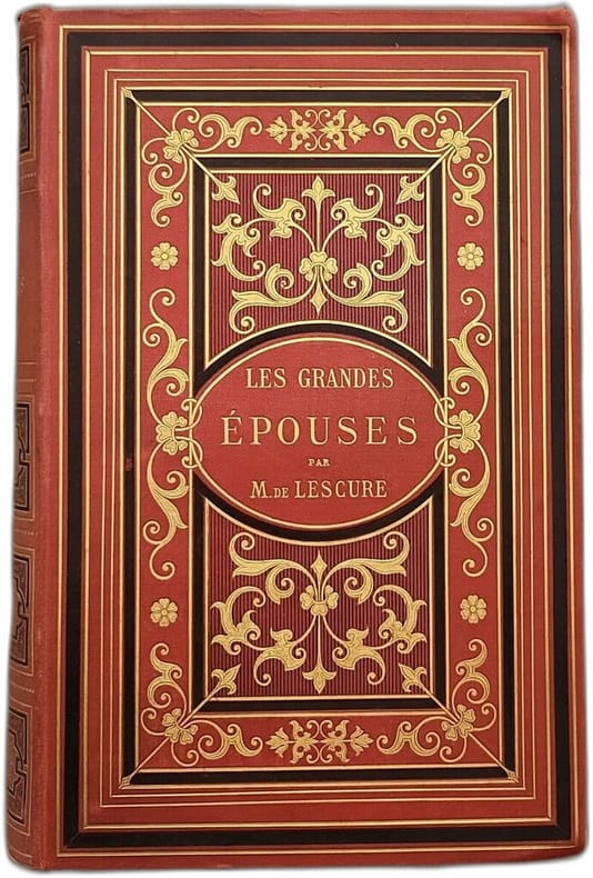 Les Grandes Epouses, études morales et portraits d'histoire intime 240 x 160 mm, ouvrage orné de douze portraits gravés sur bois, reliure demi cuir, bon état
