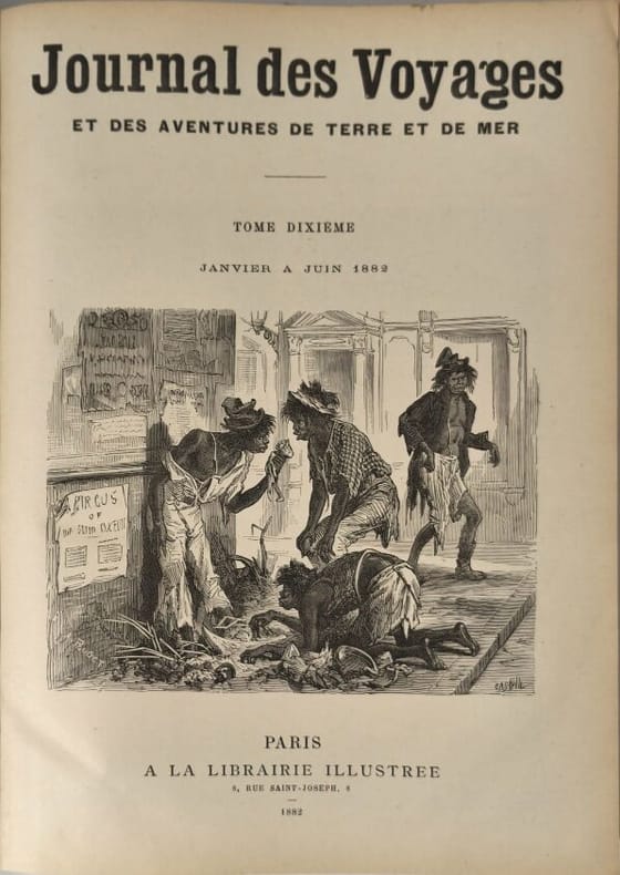 Paris, A la Librairie Illustrée, 1881 - 1882, gd. in-4, cartonnage percaline rouge éd., titre et tomaison sur dos, 420 - 420 pp., en fin des volumes table des matière et des illustrations, très nb. cartes et ill. en noir, les pages ill. de titre sont conservées, La revue de référence pour les voyages au XIXe siècle. Reliure en mauvais état; intérieur en très bon état