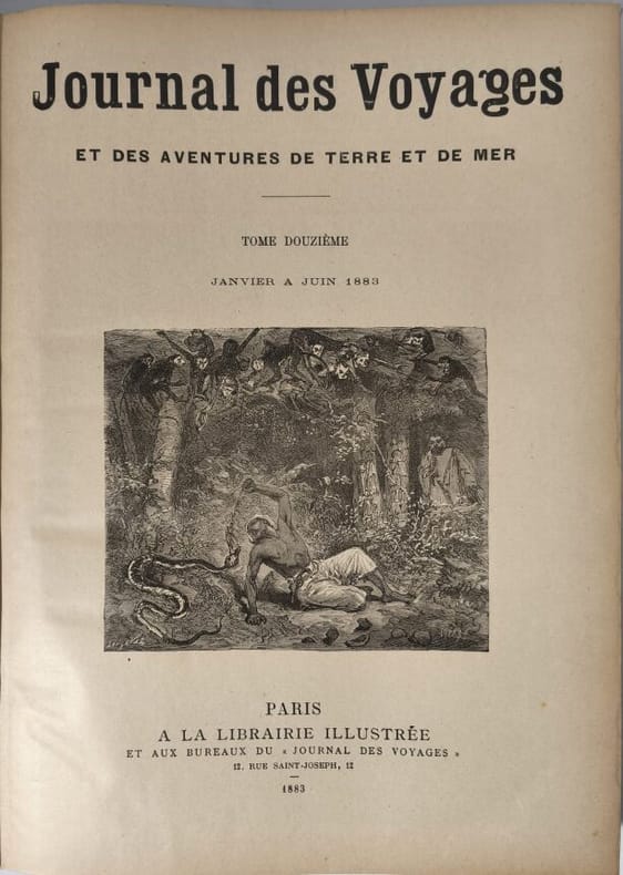 Paris, A la Librairie Illustrée, 1882 - 1883, gd. in-4, cartonnage percaline rouge éd., titre et tomaison sur dos, 428 - 420 pp., en fin des volumes table des matière et des illustrations, très nb. cartes et ill. en noir, les pages ill. de titre sont conservées, La revue de référence pour les voyages au XIXe siècle. Reliure en mauvais état; intérieur en très bon état