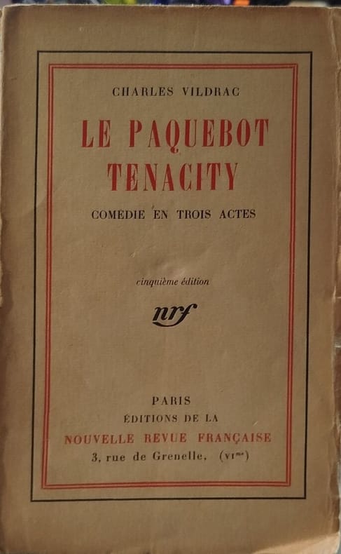 Éditions de la Nouvelle Revue Française 1923 144 pages in12. 1923. broché. 144 pages. Pièce de théâtre de Charles Vildrac mettant en scène deux amis Bastien et Ségard qui se retrouvent au Havre pour embarquer sur le paquebot Tenacity à destination du Canada. Leur projet est remis en question lorsqu'ils tombent tous deux amoureux de la même jeune femme Thérèse déclenchant une réflexion sur leurs aspirations leurs caractères et leurs choix de vie