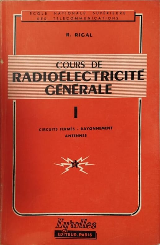 Eyrolles 1951 352-218-142-362 pages in8. 1951. broché. 4 volume(s). 352-218-142-362 pages. Le "Cours de Radioélectricité Générale" de Roger Rigal est un ouvrage technique en plusieurs tomes publié par Eyrolles couvrant les principes fondamentaux de la radioélectricité. Le Tome III traite spécifiquement de l'émission abordant la génération d'ondes porteuses et les techniques de modulation. Ce manuel était utilisé dans l'enseignement supérieur notamment à l'École Nationale Supérieure des Télécommunications