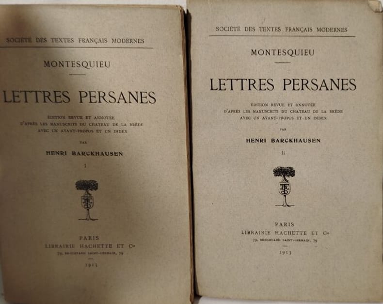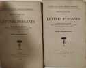 Librairie Hachette et Cie 1913 337-163 pages in8. 1913. broché. 2 volume(s). 337-163 pages. Les Lettres persanes est un roman épistolaire de Montesquieu publié en 1721. Il met en scène la correspondance fictive de deux Persans Usbek et Rica qui voyagent en Europe et observent avec un regard critique la société française de la fin du règne de Louis XIV. L'œuvre utilise le procédé du regard étranger pour dépeindre et satiriser les mœurs les institutions politiques et religieuses de son temps