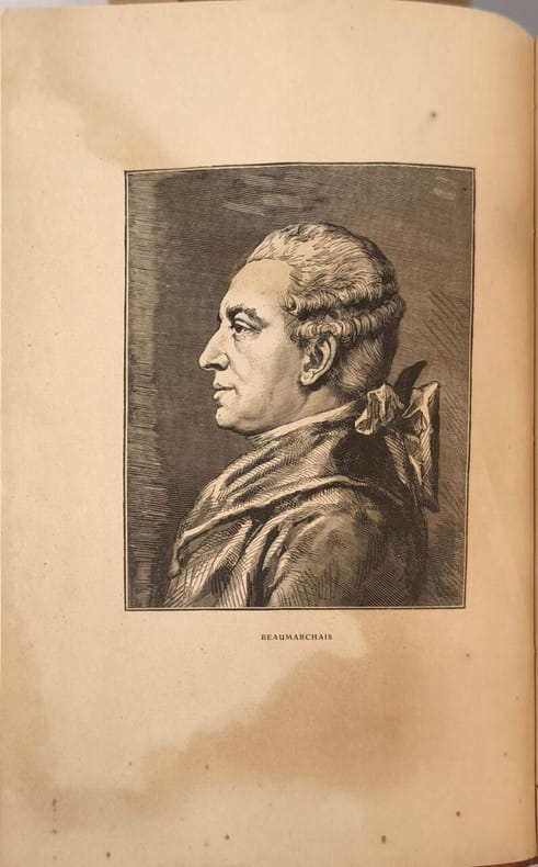 "Impression sur Vergé gothique royal; en frontispice, portrait de Beaumarchais."