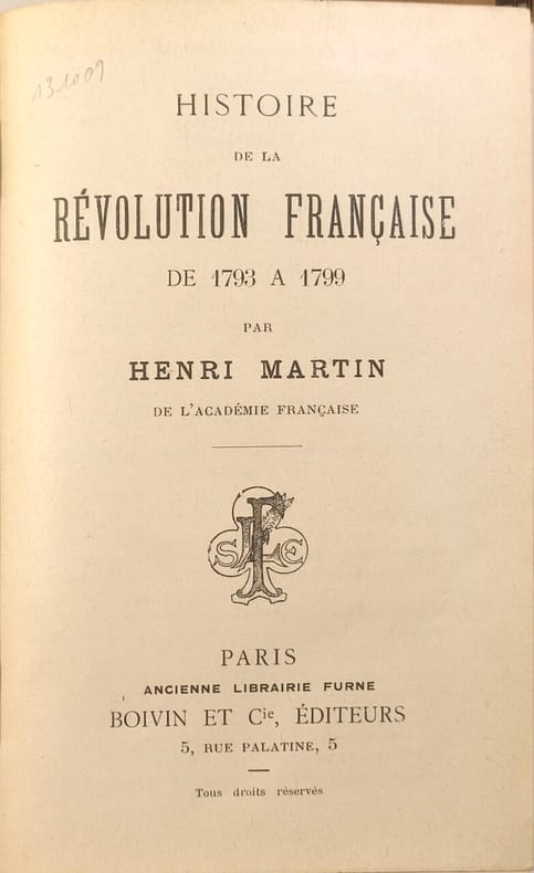 12 vol. in-8 reliure de l'époque demi-chagrin olivâtre, A la Librairie Illustrée, s.d. [ circa 1892 ], avec frontispice dans chaque volume. Rappel du titre complet : Histoire d'un Siècle (12 Tomes - Complet) La Révolution Française - Le Consulat - L'Empire - Les Deux Restaurations - La Monarchie Parlementaire - La Deuxième République - Le Second Empire - La Troisième République [ Edition originale ] Tome I : 1789-1791 ; II : 1791-1793 ; III : 1793-1799 ; IV : 1799-1807 ; V : 1807-1813 ; VI : 1813-1815 ; VII : 1815-1830 ; VIII : 1838-1848 ; IX : 1848-1852 ; X : 1852-1870 ; XI : 1870-1873 ; XII : 1873-1892