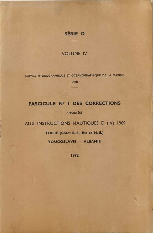 Service Hydrographique et Océanographique de la Marine 1972 22 pages in8. 1972. agrafé. 22 pages. Ce fascicule est une publication du Service Hydrographique et Océanographique de la Marine (SHOM) qui contient les corrections à apporter aux Instructions Nautiques documents essentiels pour la navigation maritime. Il s'agit d'un document technique officiel destiné à maintenir à jour les informations de sécurité en mer
