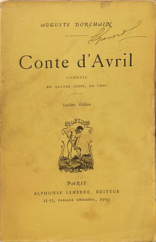 Paris Alphonse Lemerre, Editeur in 12 (18,5x12) 1 volume broché, 140 pages [1], petite restauration ancienne sur le bas du dos de la couverture. Mention de sixième édition sur la couverture. Représentée pour la première fois sur le Théâtre National de l'Odéon le 22 septembre 1885. Musique de Ch.-M. Widor. Envoi autographe signé par l'auteur à M. Thomas Pietri, en très cordial souvenir de leur rencontre à bord de l'Ile-de-France. Bel exemplaire ( Photographies sur demande / We can send pictures of this book on simple request )
