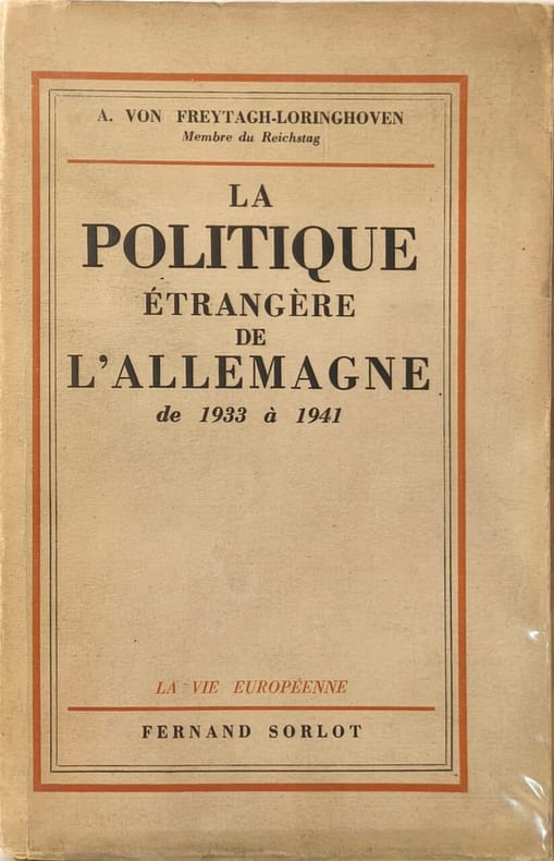 Fernand Sorlot 1942 329 pages in8. 1942. broché. 329 pages. Ouvrage historique analysant la politique étrangère de l'Allemagne sous le régime nazi entre 1933 et 1941 édité par von Freytagh-Loringhoven et publié par Fernand Sorlot. Le livre examine les décisions stratégies et évolutions diplomatiques et militaires de cette période cruciale précédant et incluant les premières années de la Seconde Guerre mondiale