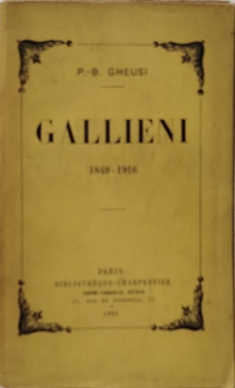 Charpentier 1922 248 pages in12. 1922. broché. 248 pages. Le livre de Gheusi sur Gallieni retrace la vie du maréchal Joseph Gallieni (1849-1916) officier colonial français qui a joué un rôle majeur dans la pacification et l'administration de Madagascar puis dans la défense de Paris lors de la Première Guerre mondiale. L'ouvrage aborde également son héritage controversé lié à la politique coloniale