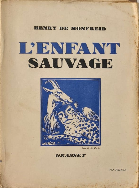 Grasset 1938 281 pages in12. 1938. broché. 281 pages. L'Enfant sauvage raconte l'histoire d'Abdi futur marin fidèle d'Henry de Monfreid abandonné enfant sur une île déserte de la mer Rouge avec ses chèvres. Le récit décrit sa jeunesse sa survie solitaire et ses aventures ultérieures aux côtés de l'auteur mêlant émotion dureté et merveilleux