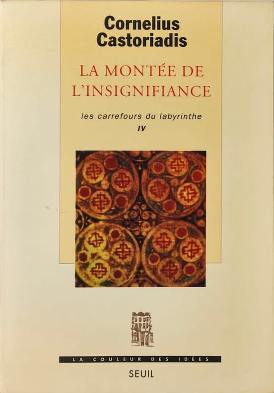 SEUIL 1998 256 pages 14x20 4x1 7cm. 1998. Broché. 256 pages. Dans 'La montée de l'insignifiance' quatrième volume des 'Carrefours du labyrinthe' publié en 1996 Cornelius Castoriadis analyse la déliquescence démocratique en Occident. Il interroge les notions de démocratie et de liberté proposant une critique acerbe des sociétés contemporaines et de leur tendance à l'insignifiance