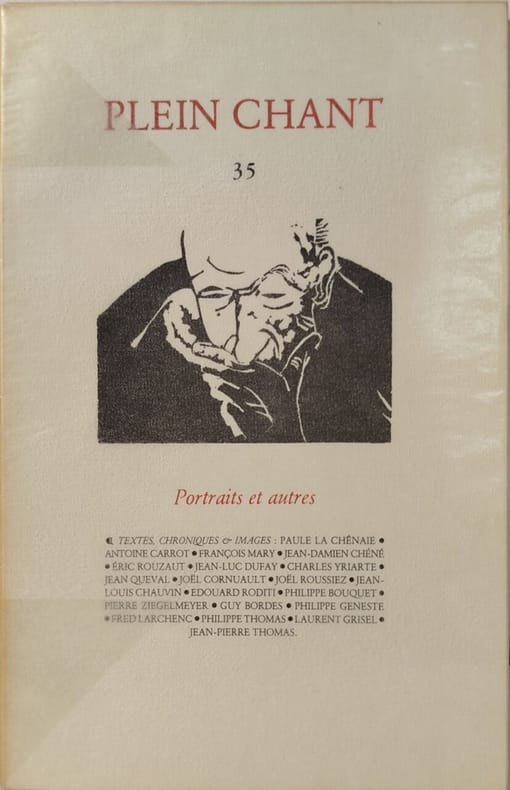 Plein chant 1987 126 pages in8. 1987. broché. 126 pages. Plein Chant N°35 'Portraits & autres' est un numéro de la revue littéraire des éditions Plein Chant spécialisée dans la littérature prolétarienne et la redécouverte de textes rares. Il s'inscrit dans le projet éditorial singulier d'Edmond Thomas fondateur de la maison consacré à donner voix aux gens du peuple et à une soif de justice sociale par le livre