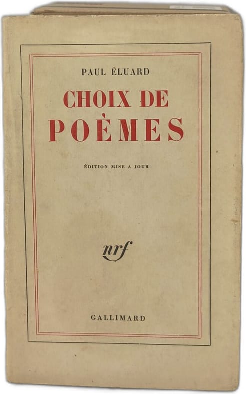 Gallimard 1963 440 pages in8. 1963. broché. 440 pages. Choix de poèmes de Paul Éluard est une anthologie personnelle approuvée par l'auteur couvrant sa production de 1914 à 1951. Elle présente une sélection représentative de son œuvre allant de ses premiers textes à ses poèmes les plus récents mettant en lumière sa poésie sobre lumineuse et engagée centrée sur l'amour le désir et la liberté