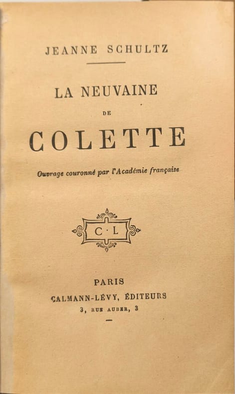 Calmann-Lévy Éditeurs 1891 351 pages in2. 1891. Demi toile. 351 pages. La Neuvaine de Colette est un ouvrage illustré de littérature pour la jeunesse publié en 1891 qui utilise le cadre d'une neuvaine (prière sur neuf jours) pour raconter une histoire probablement à visée morale ou spirituelle