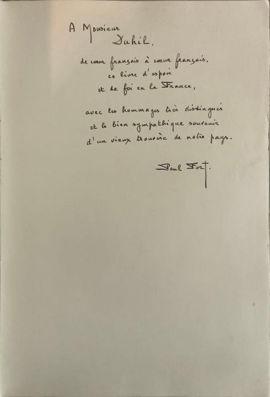 Armand jules klein non paginé pages IN4. Sans date. broché. non paginé pages. Poème ou recueil de poésie de Paul Fort publié par Armand Jules Klein évoquant l'espoir la joie et la résilience française face à l'adversité distribué en dehors des circuits de librairie traditionnels