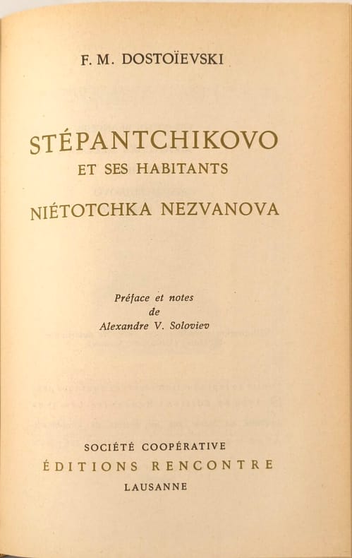 Editions rencontre 1960 591 pages in12. 1960. reliure editeur plein skivertex. 591 pages. Ce volume rassemble plusieurs œuvres narratives de Dostoïevski probablement des nouvelles ou récits courts comme les Nuits blanches' accompagnés de textes moins connus tels que 'Épantchikovo et ses habitants' et 'Étotchka Nezvanova'. L'édition est proposée par les Éditions Rencontre maison connue pour ses collections littéraires