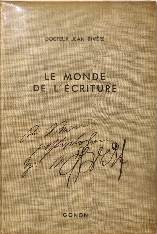 GONON 1958 294 pages in8. 1958. reliure editeur pleine toile sous rodhoid. 294 pages. Ouvrage du Docteur Jean Rivi publié par les éditions Gonon présentant une étude approfondie sur l'écriture à travers le monde illustrée par 129 planches hors-texte en reproductions. Le livre semble combiner analyse textuelle et documentation visuelle pour explorer les systèmes d'écriture