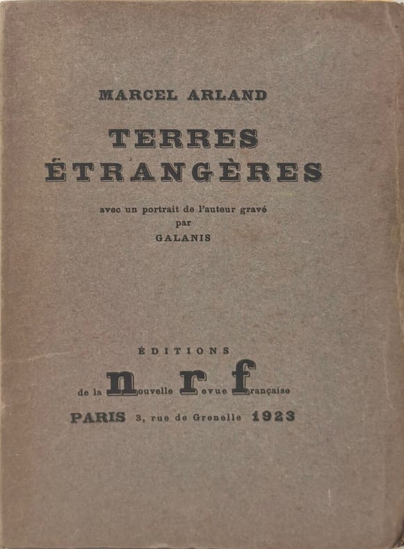 Paris, nrf 1923. 78 p., 1 p. Avec un portrait en eaux fortes de l'auteur par Galanis. Couverture originale.