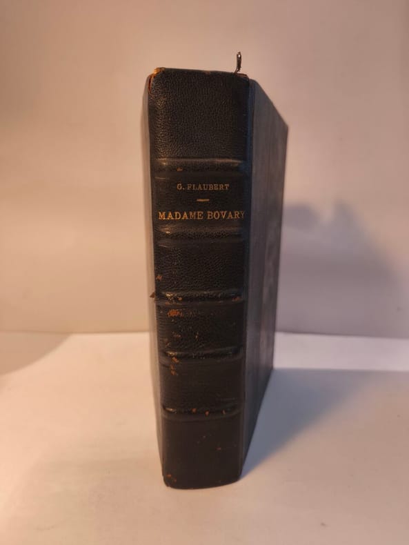 Paris, Michel Lévy frères [Typ. de Mme Ve Dondey-Dupré, rue Saint-Louis, 46], 1857, in-12, 2 volumes, [1] feuillet de dédicade, [1] faux-titre, 490 pages en numérotation continue, avec [1] feuillet de titre non compris dans la pagination en tête du tome II, Demi-chagrin aubergine de l'époque, dos à faux nerfs et fleuronnés, ÉDITION ORIGINALE en librairie, publiée après la parution en livraisons dans la Revue de Paris en 1856. PREMIER TIRAGE de l'édition ordinaire, contenant en tête du tome I la dédicace "à Marie-Antoine-Jules Sénart", c'est-à-dire Sénard, l'avocat qui défendit la cause célèbre de ce roman poursuivit par le parquet de la Seine pour outrage aux bonnes moeurs, orthographié avec un "t" final qui sera corrigé par le "d" dès le second tirage. En outre, on détermine l'origine de ce tirage en relevant quelques fautes non encore corrigées, dont: pages 50 et 67 non chiffrées ; page 145 (ligne 23), "demanda-t-elle" au lieu de "se demanda-t-elle" ; page 290 (ligne 25), il y a une virgule après "abîme" ; page 377 (21), impression mauvaise du premier mot "Puis" ; etc. (Piclin). "C'est associé à celui de Madame Bovary que le nom de Flaubert apparut pour la première fois sur une couverture" (En français dans le texte). Ce chef-d'oeuvre immense rassemble à lui trop de qualificatifs pour que l'on puisse ici en faire l'étalage. Retenons néanmoins quelques phrases d'un autre monument de la littérature française, Émile Zola, dans le Le Messager de l'Europe (novembre 1875): "Quand Madame Bovary parut, il y eut toute une évolution littéraire. Il sembla que la formule du roman moderne, éparse dans l'oeuvre colossale de Balzac, venait d'être réduite et clairement énoncée dans les quatre cents pages d'un livre. Le code de l'art nouveau se trouvait écrit. Madame Bovary avait une netteté et une perfection qui en faisaient le roman type, le modèle définitif du genre. Il n'y avait plus, pour chaque romancier, qu'à suivre la voie tracée, en affirmant son tempérament particulier et en tâchant de faire des découvertes personnelles. Certes, les conteurs de second ordre continuèrent à battre monnaie avec leurs histoires à dormir debout ; les écrivains qui se sont taillés une spécialité en amusant les dames n'abandonnèrent pas leurs récits à l'eau de rose. Mais tous les débutants de quelque avenir reçurent une profonde secousse ; et il n'en est pas un aujourd'hui, parmi ceux qui ont grandi, qui ne doive reconnaître tout au moins un initiateur en Gustave Flaubert. Il a, je le répète, porté la hache et la lumière dans la forêt parfois inextricable de Balzac. Il a dit le mot vrai et juste que tout le monde attendait." Il manque le faux-titre du tome II. Couvertures non conservées. Sans le catalogue éditeur qui terminait le tome I. Petit accroc réparé et petite tache brune au feuillet de dédicace. Dos insolés. Carteret, I, 263-266. Clouzot, 121. En Français dans le texte, 277. G.-R. Piclin, "L'Édition originale de Madame Bovary". Les Amis de Flaubert. Année 1960, Bulletin n° 16, p. 54 [En ligne]. Vicaire III, 721-723. Couverture rigide