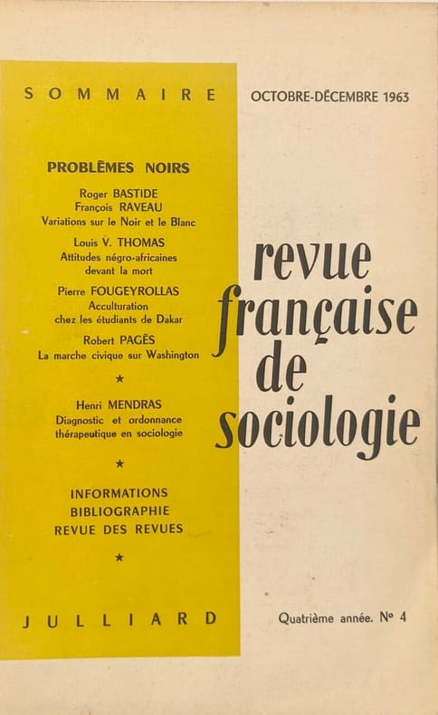 Julliard 1963 511 pages in8. 1963. broché. 511 pages. Il s'agit probablement d'un numéro ou d'un recueil de la Revue française de sociologie édité par Roger Bastide et publié par les éditions Julliard contenant des articles de recherche sociologique