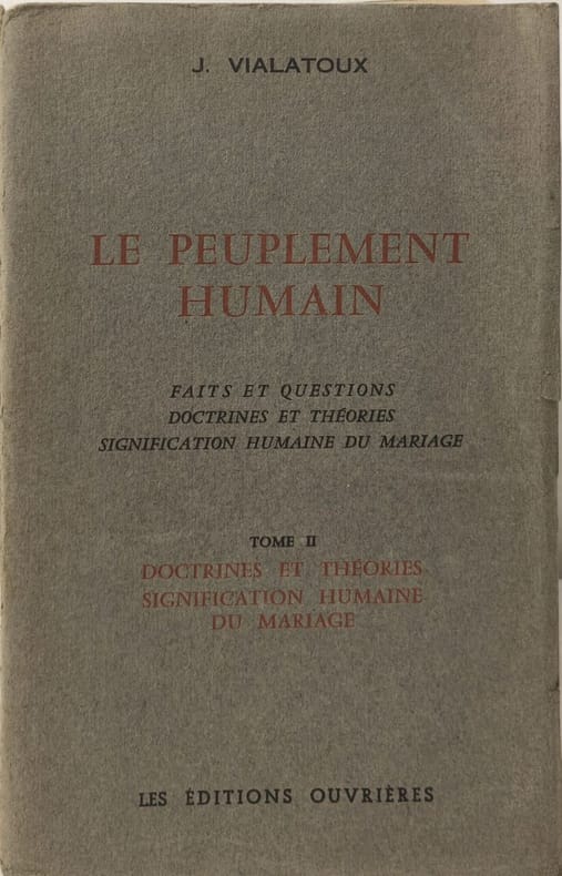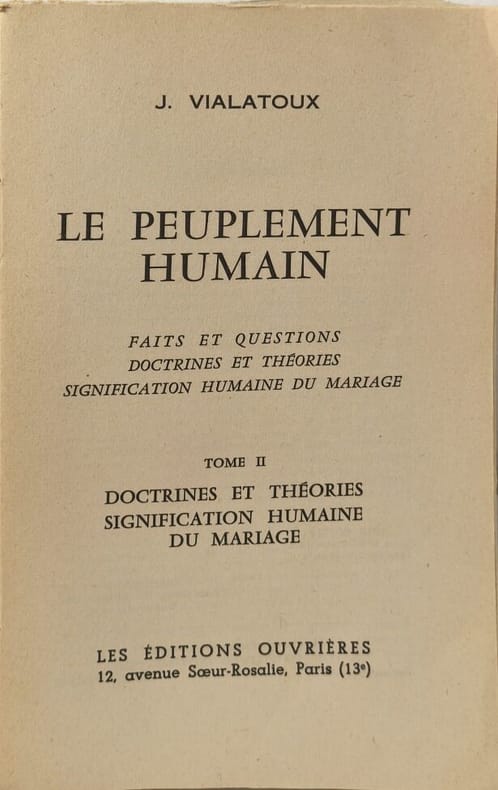 Les Editions Ouvrières TOME 2 SEUL. BROCHE BON ETAT.in-8 broché, 718pp; bel exemplaire non coupé. PHOTOS SUR DEMANDE. LE PEUPLEMENT HUMAIN. faits et questions, doctrines et théories, signification humaine du mariage TOME II : DOCTRINES ET THEORIES SIGNIFICATION HUMAINE DU MARIAGE , J. VIALATOUX. Les éditions ouvrières, Broché, 1959