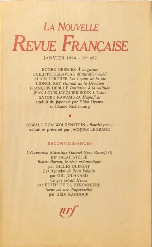 nrf 1994 128 pages in8. 1994. broché. première édition. 128 pages.