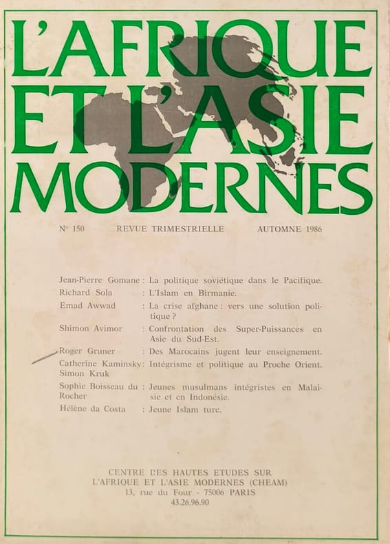 Centre des Hautes Etudes sur l'Afrique et l'Asie Modernes. Guy Nicolas, Le monde arabe et l'Afrique noire. Ph. Decraene, Le Malawi au coeur et à l'écart des turbulences de l'Afrique australe. Bruno Munier, La Chine et le Kampuchéa. Roland Miette, L'agriculture algérienne... Classification Dewey : 320-Science politique