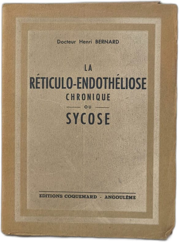 Editions Coquemard - Angoulême 350 pages in8. Sans date. broché. 350 pages. Ouvrage médical du Docteur Henri Bernard traitant d'une pathologie appelée "éticulo endothéliose chronique sycose" publié par les éditions Coquemard à Angoulême. Le titre suggère une étude spécialisée sur une affection chronique impliquant le système réticulo-endothélial