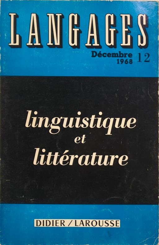 1968, Didier/Larousse, in-8 broché de 135 pages, Langages n°12 (décembre 1968) - linguistique et littérature | Etat : bon état, couverture un peu défraîchie (Ref.: ref88571)