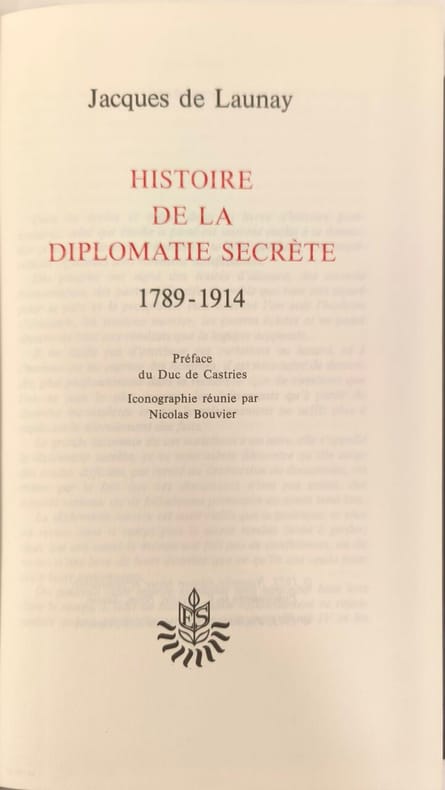 Editions edito-service SA 1973 427 pages in8. 1973. reliure editeur. 427 pages. Ouvrage historique de Jacques de Launay analysant les coulisses et les mécanismes cachés des relations internationales entre la Révolution française et la Première Guerre mondiale. Cette édition revue et complétée est préfacée par le Duc de Castries et comprend une iconographie réunie par Nicolas Bouvier